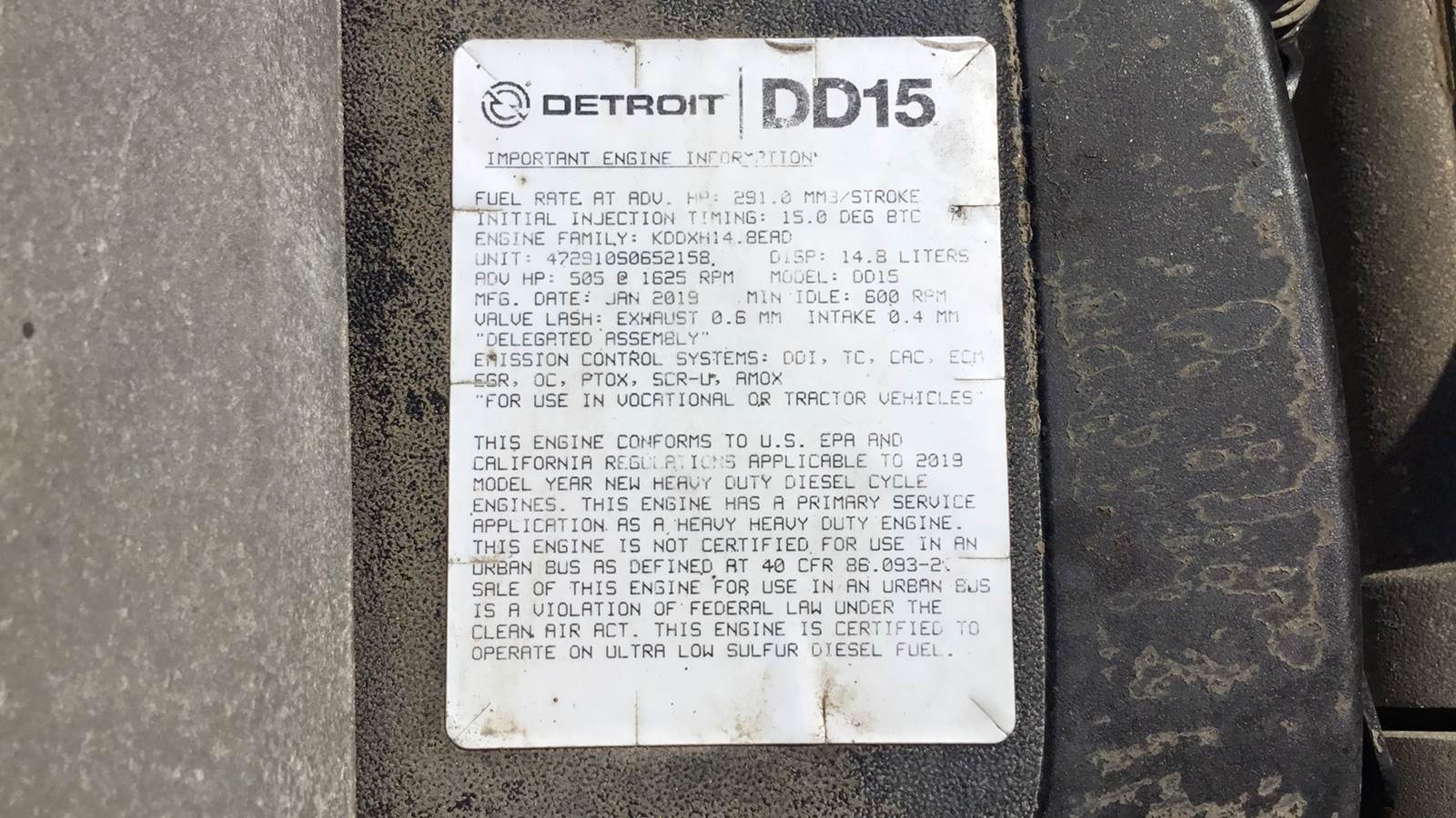 | Engine model | DD15 EPA 17 |
